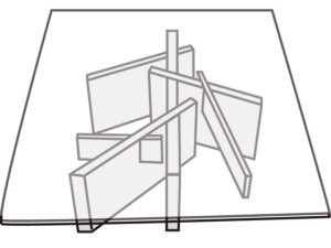 Low table with assembled solid wood structure and top in 12 mm thick toughened ”cristal” glass with tapered edges.