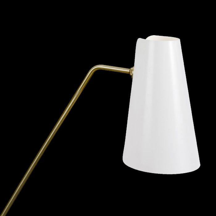 The G21 floor lamp is the perfect source of targeted, intimate mood lighting. This model, designed in 1951 by Pierre Guariche, is composed of a metal shade which shields the eyes from the light source whilst directing the flow of light. The stem in lacquered brushed brass is directional, with a sliding peg which enables one to adjust its height for greater comfort. Floor lamp equipped with a painted aluminium reflector (white exterior and interior), a painted steel base and a satin varnished brushed brass structure. Inline dimmer (for use with compatible bulb). Requires an E 27 cap bulb (not included), max. 11 W dimmable LED. Equipped with a 2.5 m cable and europlug – class 2 – supply 220-240V 50/60Hz.