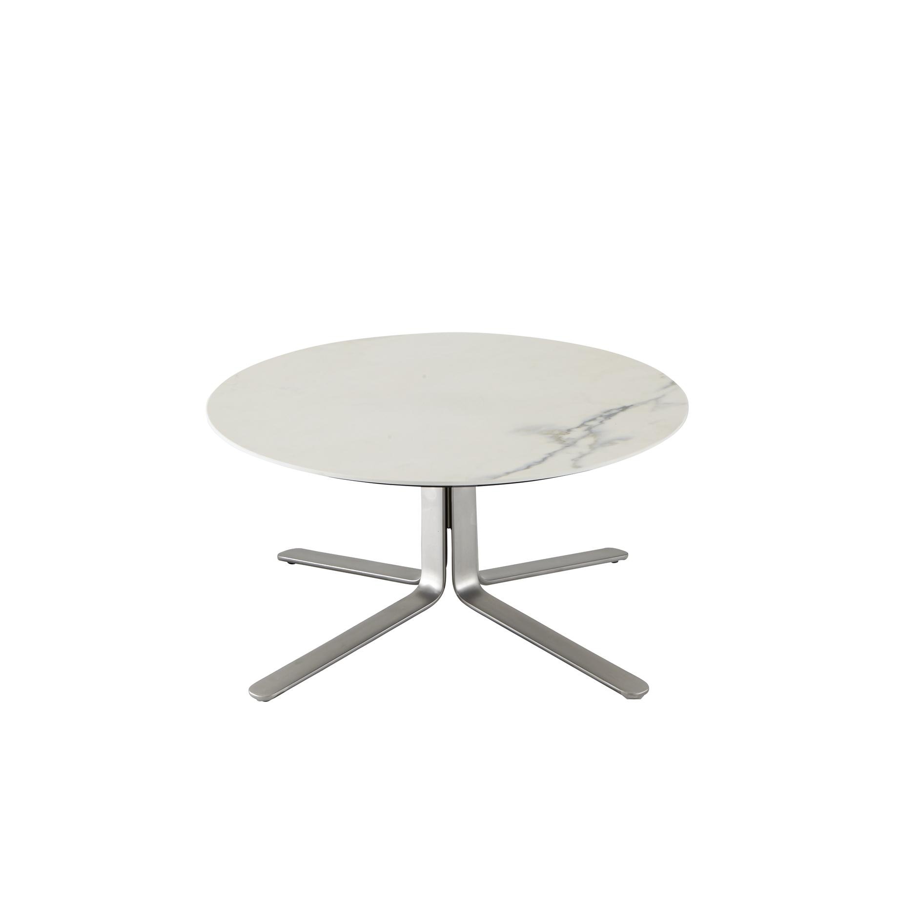 low table chromed base top in white marble-effect ceramic stoneware £1189no. of items : 1 low table chromed base top in white marble-effect ceramic stoneware dimensions : H32 x D71 x W71