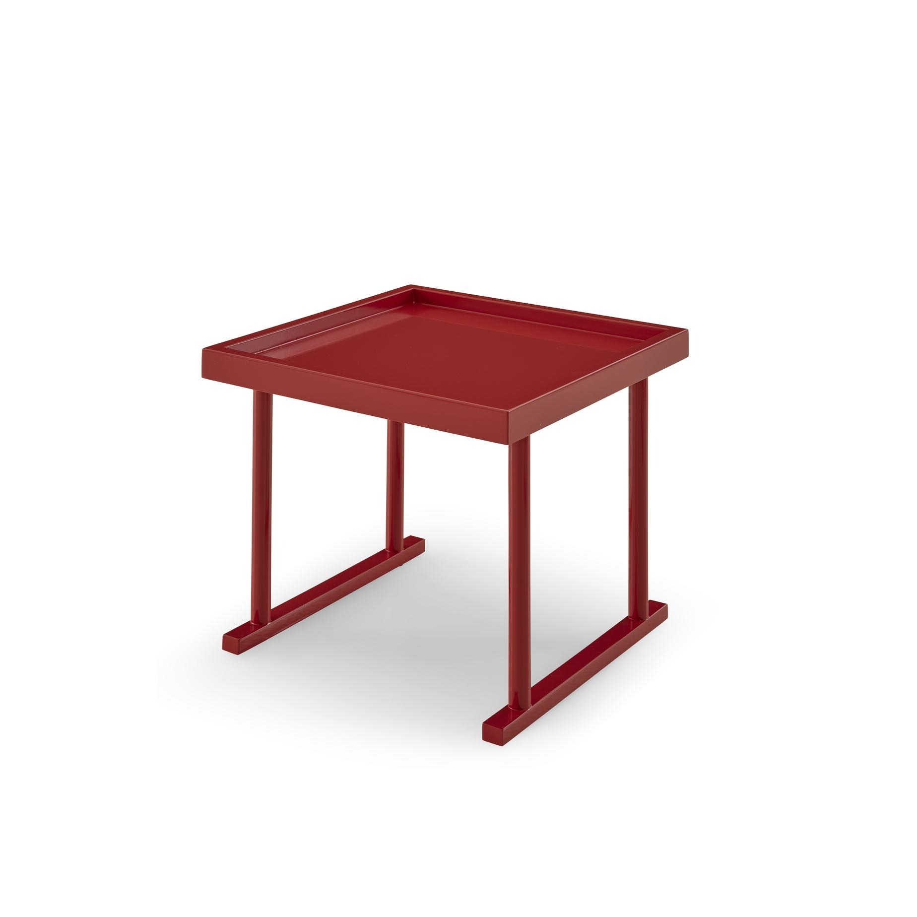 Small occasional table in gloss finish red or black lacquered ash. May be combined to create a large low table, or stacked to create small-scale storage.