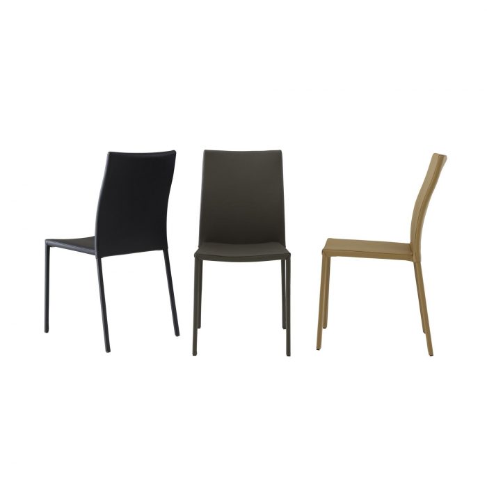 Chair with steel structure clad in a layer of polyether foam, density 43 kg/m3 – 4.1 kPa and fully upholstered in pigmented corrected-grain cowhide. SLIM CHAIR has successfully passed the tests of the FCBA, making it particularly suitable for contract use.